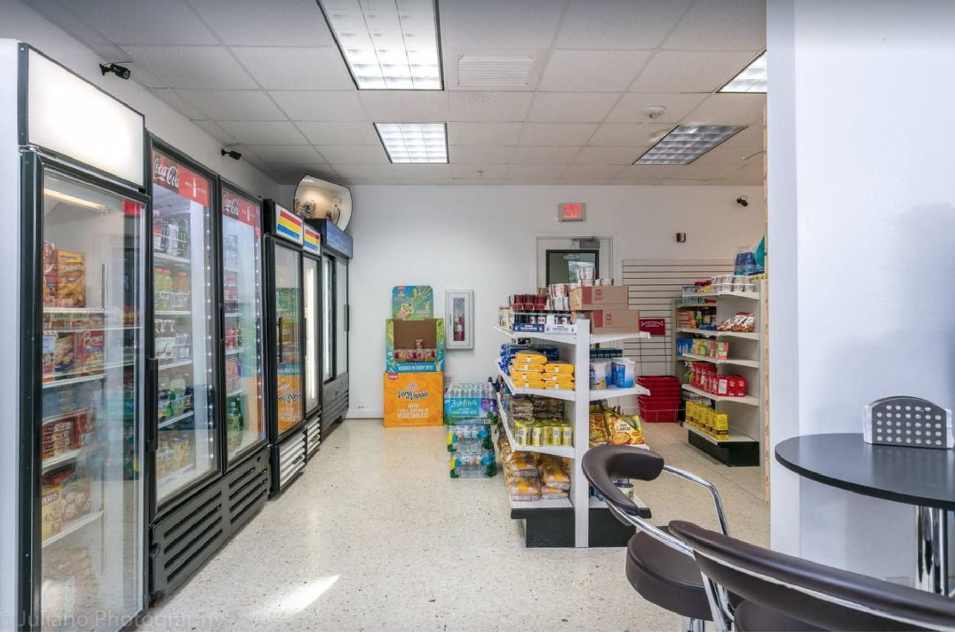 Mini market, café, and beauty salon