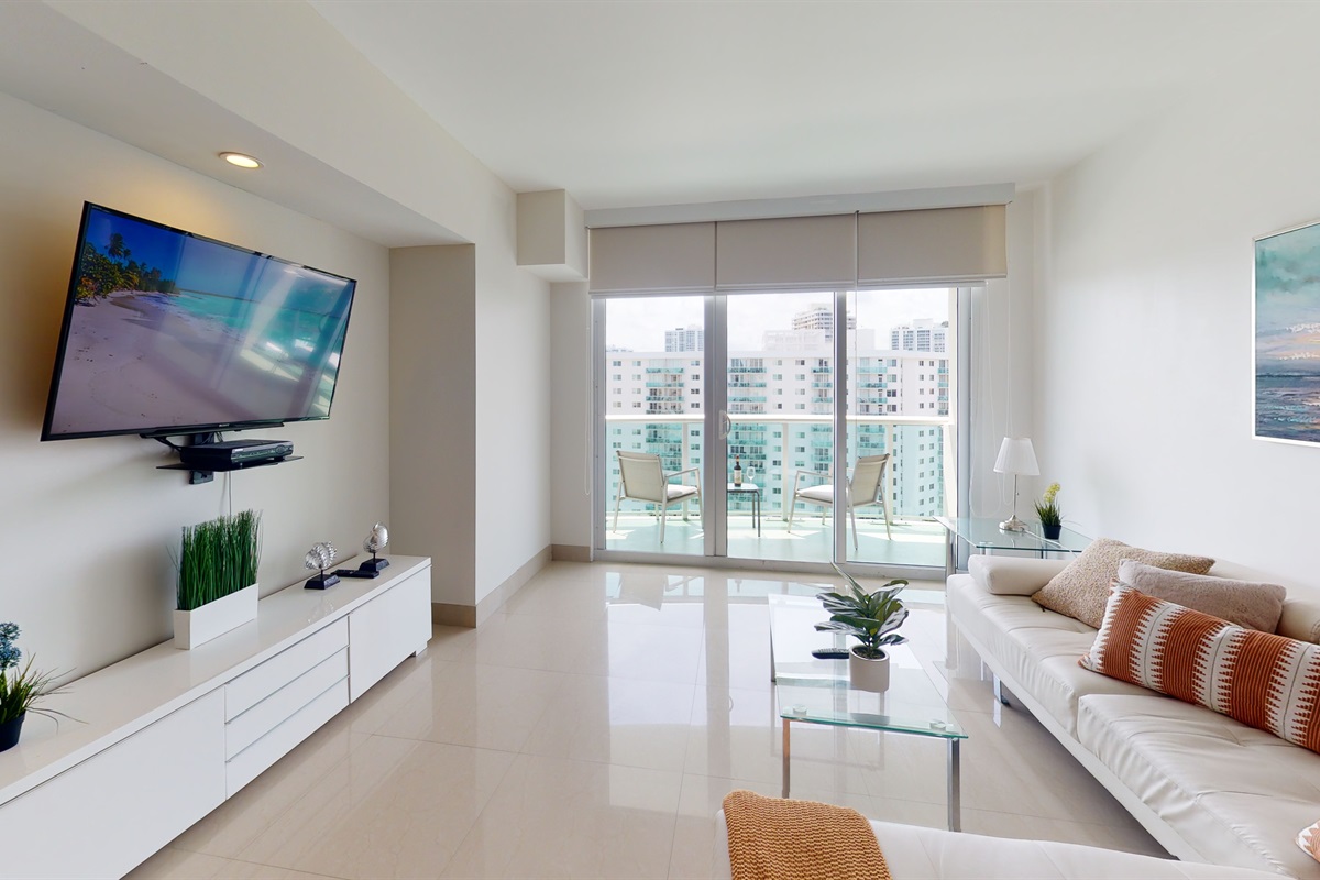Spacious and fully furnished apartment with 1 bedroom + DEN (used as a second bedroom — it's only called "DEN" because it has no exterior window), 1 full bathroom + 1 half bathroom, and beautiful views of the bay, pool, and tennis courts from the balcony. Located at Ocean Reserve Condominium in Sunny Isles Beach — just across the street from the beach!
